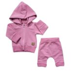 2-dielna bavlnená tepláková súprava s odopínacou kapucňou – ružová