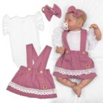 Obsahuje celorozopínacie body s krátkym rukávom (volánikom), suknička s láclom z rebrovaného bavlneného materiálu + čelenka.