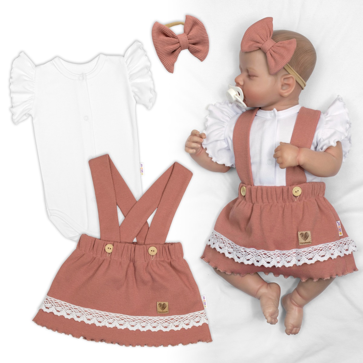 3D súprava LADY, bavlna, body kr. rukáv, suknička s láclom, čelenka, staroružová/biela