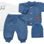 5-dielna pletená sada Baby Nellys, Boy, body, nohavice, sveter, čiapka, motýlik, modrá,62