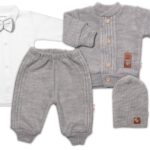 5-dielna pletená sada Baby Nellys, Boy, body, nohavice, sveter, čiapka, motýlik – šedá,68