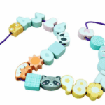 Sada obsahuje 22 prvkov: korálky so zvieratami: medvedík, panda, sova, líška a mýval
