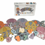 Každý prvok je zdobený peknými zvieratami, tlmenými farbami a vzorom, odlišným od každého čísla.
