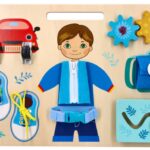 Táto tabuľa umožní tréning motoriky ruky vďaka rôznym zámkom a uzáverom, ktoré je možné otvoriť. Nájdete tu pohyblivé kolesá auta, suchý zips a šnúrku, ozubené kolieska, zips, pracku a gombík a posuvnú mačičku.