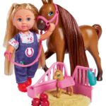 Bábika Evička Veterinárka pomáha na svet žriebätku. S kobylou, žriebätkom, pelechom pre žriebätko a príslušenstvom. Veľkosť bábiky 12 cm.