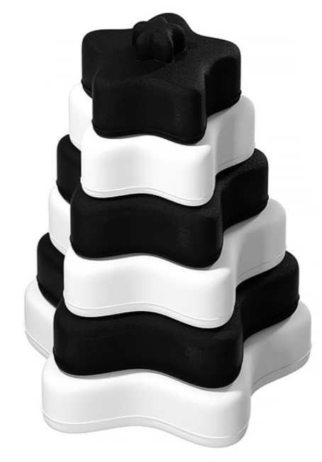 Šesťdielnej puzzle/veža. Môže slúžiť ako hryzátko, ktoré pomáha upokojiť svrbivé ďasná počas rastu zubov. Umožňuje dieťaťu cvičiť koordináciu ruka-oko, stimuluje kreativitu, trpezlivosť a zručnosti pri riešení problémov (ako postaviť vežu, aby sa nerozpadla).