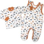 Baby Nellys 2-dielna sada, bavlnené dupačky s košieľkou Car, smotanové