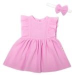 Baby Nellys 2-dielna sada mušelínove šatočky + čelenka, ružové