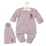 Baby Nellys 2-dielna sada Pletený overálek STAR + čiapky Hand Made, bežový, veľ. 80/86