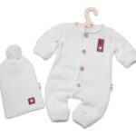 Baby Nellys 2-dielna sada Pletený overálek STAR + čiapky Hand Made, biely, veľ. 80/86