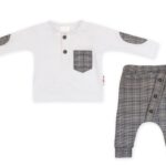 Baby Nellys 2-dielna sada Robert, tričko s dl. rukávom, nohavice Baggy-šedé kárko, veľ. 92