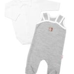 Baby Nellys 2-dielna súpravička Star, body dl. rukáv + pletené dupačky, sivé, veľ. 68