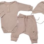 Baby Nellys 3-dielna rebrovaná súpr. Hand Made, body, tepláčiky a čiapočka, béžová, veľ.62