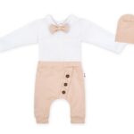 Baby Nellys 3-dielna sada Hubert, body s motýlikom, tepláčiky a čiapočka – béžový, veľ. 92