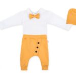 Baby Nellys 3-dielna sada Hubert, body s motýlikom, tepláčiky a čiapočka – hořčica, veľ.92