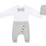 Baby Nellys 3-dielna sada Hubert, body s motýlikom, tepláčiky a čiapočka – sivá, veľ. 92