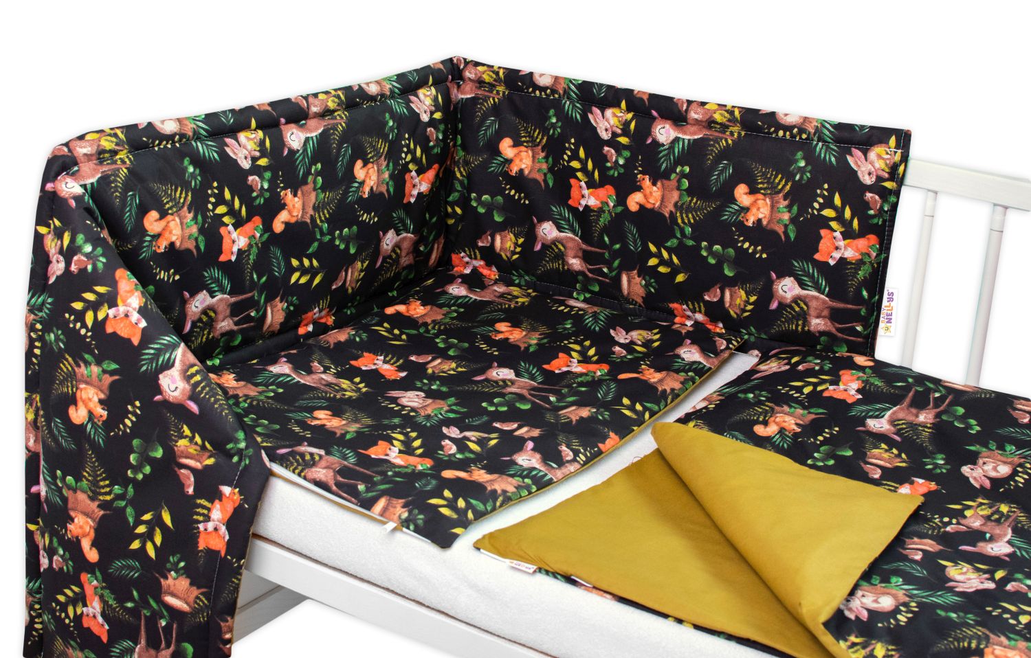 Baby Nellys 3-dielna sada Mantinel s obliečkami, Baby Friends, čierna/zelená