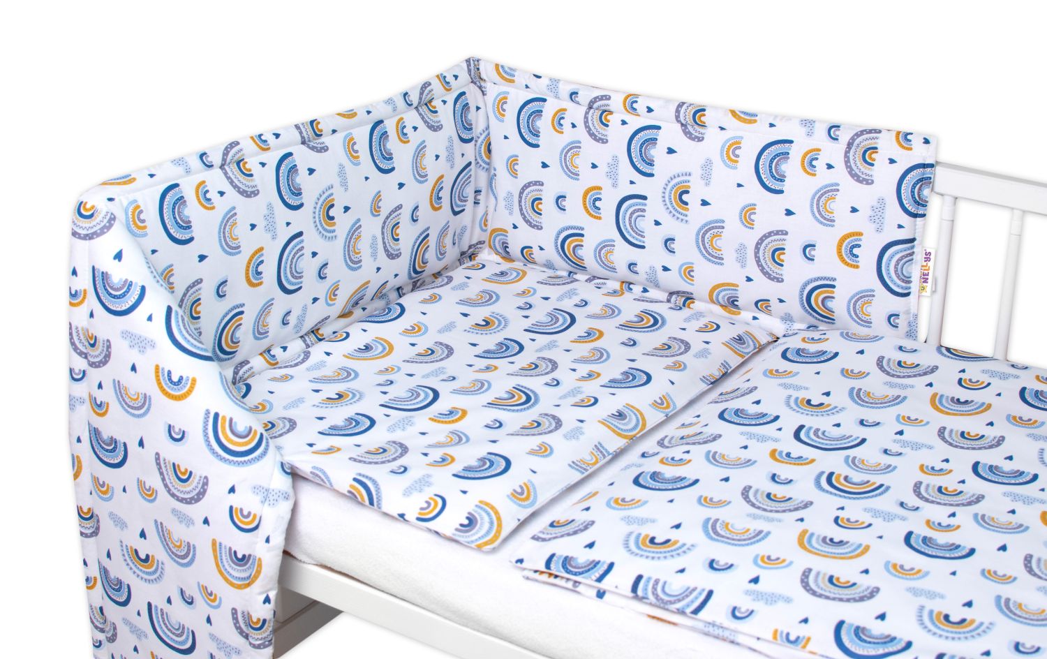 Baby Nellys 3-dielna sada Mantinel s obliečkami -Dúha, modrá, 135×100 cm