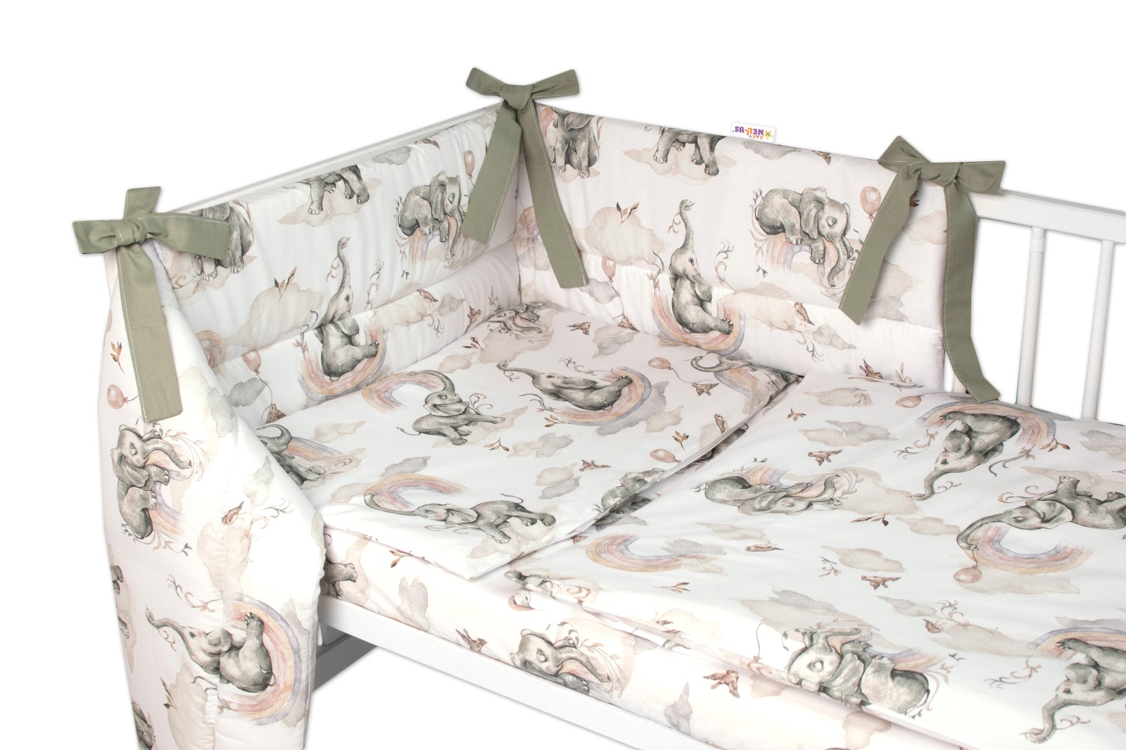 BABY NELLYS 3-dielna sada mantinel s obliečkami, Slon a Dúha, biela/sivá, 135×100 cm
