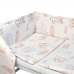 120×90 – obliečky na perinku 120x90cm, obliečky na vankúšik 40×60 cm, mantinel 60x60x60cm – na postieľku 120x60cm.