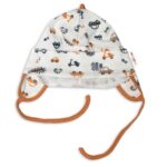 Baby Nellys Bavlnená čiapočka s uškami na zavazování- Car, smotanová / hnedá