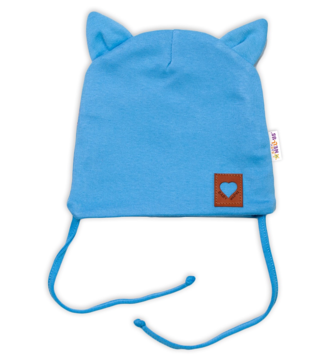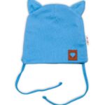 Baby Nellys Bavlnená dvojvrstvová čiapka s uškami na zaväzov., FOX – modrá, veľ. 68/74