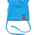 Baby Nellys Bavlnená dvojvrstvová čiapka s uškami na zaväzovanie, TEDDY – modrá