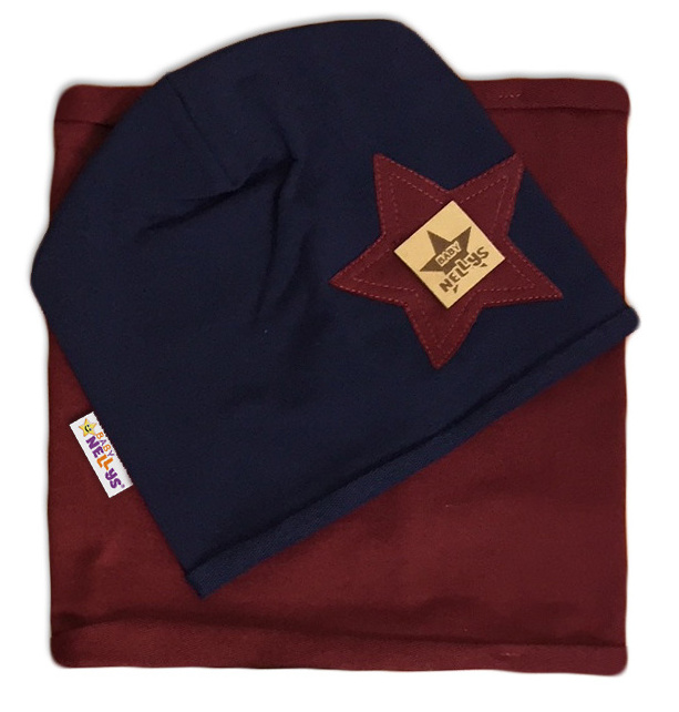 Baby Nellys Bavlnená sada čiapočka a nákrčník Nelly Star – tm.modrá s bordo, vel. 110