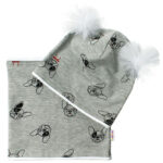 Baby Nellys Bavlnená sada čiapočka s tutu a nákrčník Psíci – šedá, ekri
