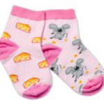 Baby Nellys Bavlnené veselé ponožky Myška a syr – svetlo ružová, veľ. 122/128