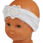 Baby Nellys: Biela čelenka s kvetinkou & flitrami (80/92)