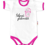 Baby Nellys Body krátky rukáv – Šéfka pieskoviska – biele / ružový lem, veľ. 68