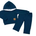 BABY NELLYS Detská tepláková súprava s kapucňou a uškami, granátová, veľ. 80