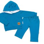 BABY NELLYS Detská tepláková súprava s kapucňou a uškami, petrolejová, veľ. 80