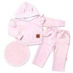 BABY NELLYS Detská tepláková súprava s kapucňou, volániky a uškami – ružová, vel. 80