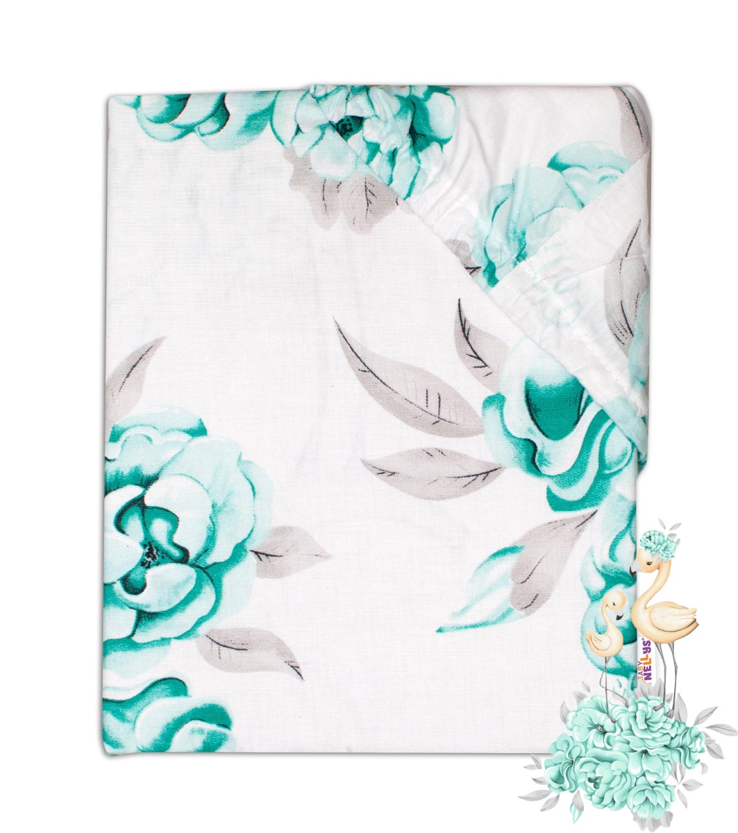 Baby Nellys Detské bavlnené prestieradlo do postieľky – Plameniak mätový, 140 x 70