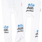 Baby Nellys Detské pančuchy bavlnené, Little Prince – biele s modrou korunkou, veľ. 80/86