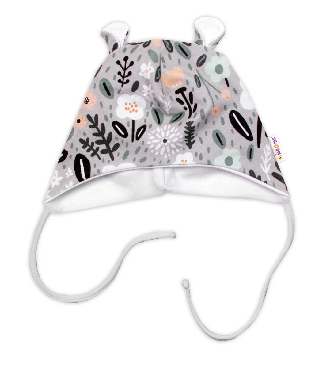 Baby Nellys Dojčenská čiapočka s uškami na zaväzovanie – Palouček, mätová, veľ. 68/74