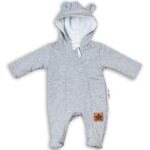 Baby Nellys Dojčenský teplákový overal s kapucňou – sivý, veľ. 86