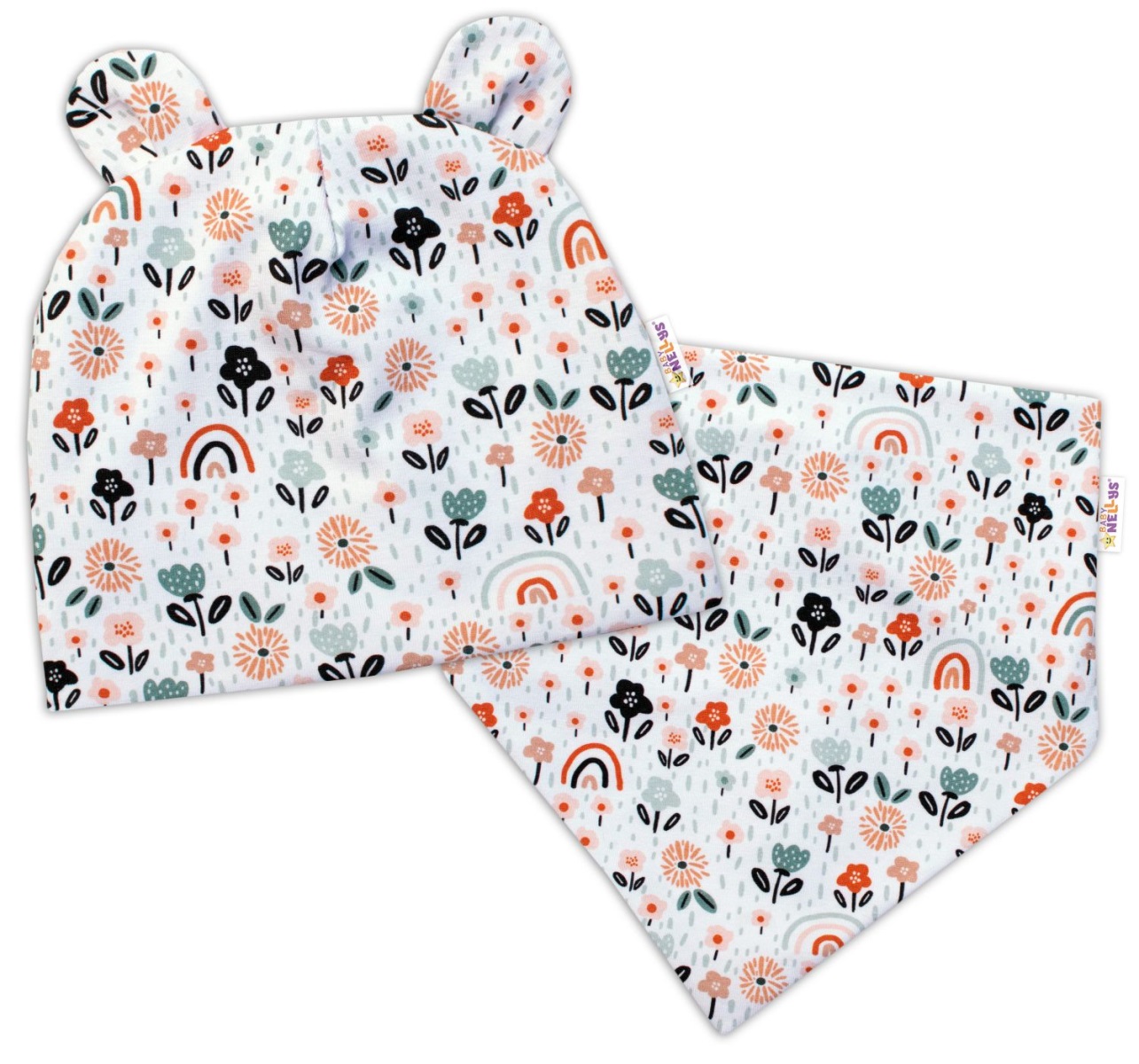 Baby Nellys Dvojvrstvová čiapka s uškami + šatka Palouček, smatanová, veľ. 80/92