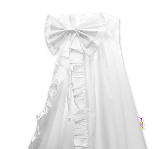 Bavlnená nebesia s volánikom a mašľou zaručene ozdobia každú detskú postieľku alebo kolísku.