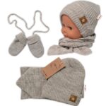 Baby Nellys Pletená čiapka so šálom a rukavičky 3v1, STAR – béžová, veľ. 56/62