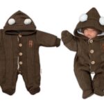 Baby Nellys Pletená kombinéza/overal LUX STAR s kožúškom – dvojvrstvová, hnědá, veľ. 68