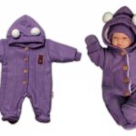 Baby Nellys Pletená kombinéza/overal LUX STAR s kožúškom – dvojvrstvová, slivková, veľ. 68