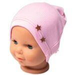 Baby Nellys Rebrovaná čiapka Hviezdičky – ružová, veľ. 92/98