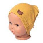 Baby Nellys Rebrovaná čiapka Macko – horčicová, veľ. 92/98