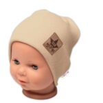 Baby Nellys Rebrovaná dvojvrstvová čiapka s lemom – béžová