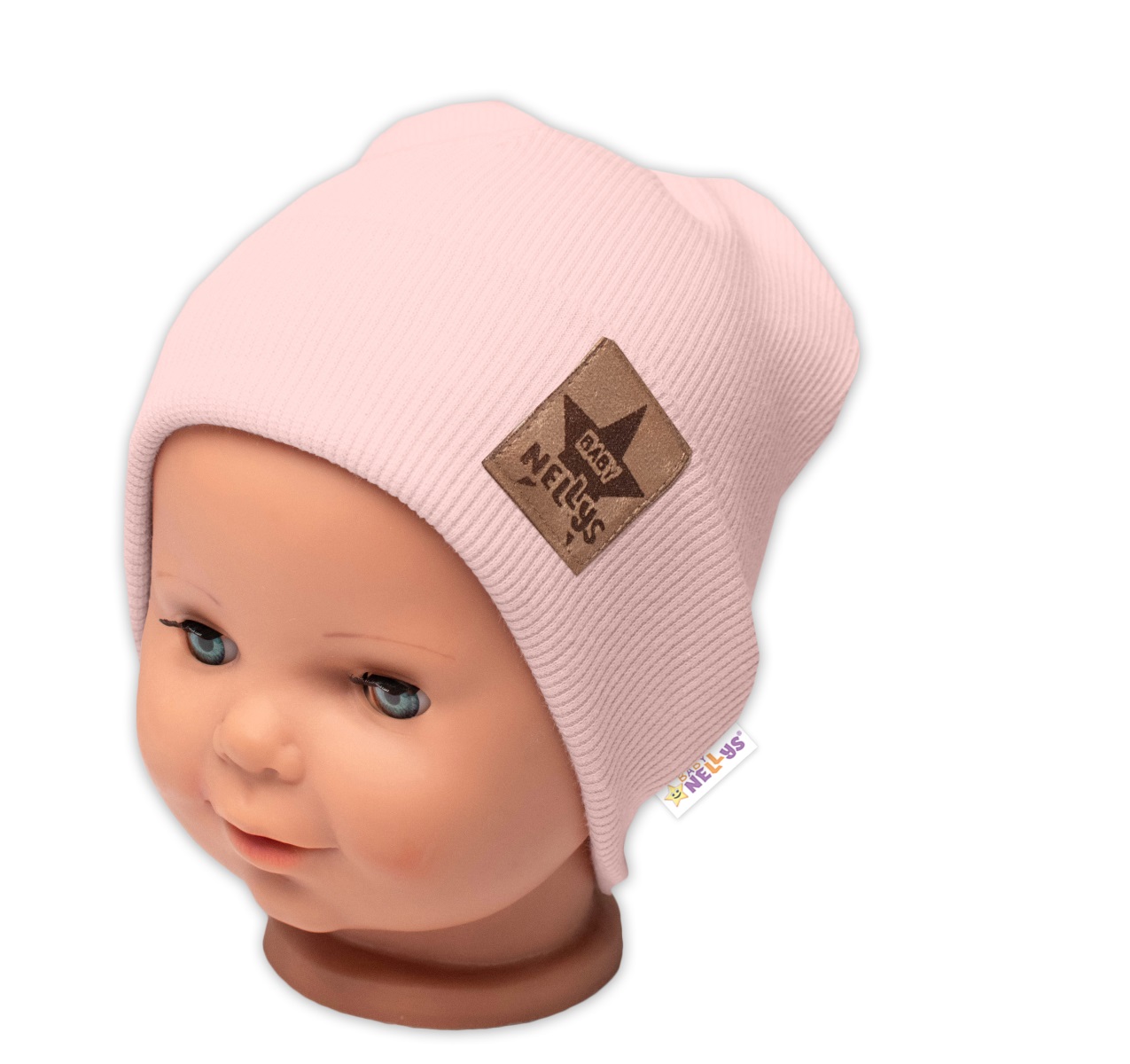 Baby Nellys Rebrovaná dvojvrstvová čiapka s lemom – púdrová, veľ. 104/110