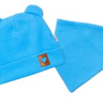 Baby Nellys Rebrovaná dvojvrstvová čiapka s uškami + šatka TEDDY – modrá, 68/74