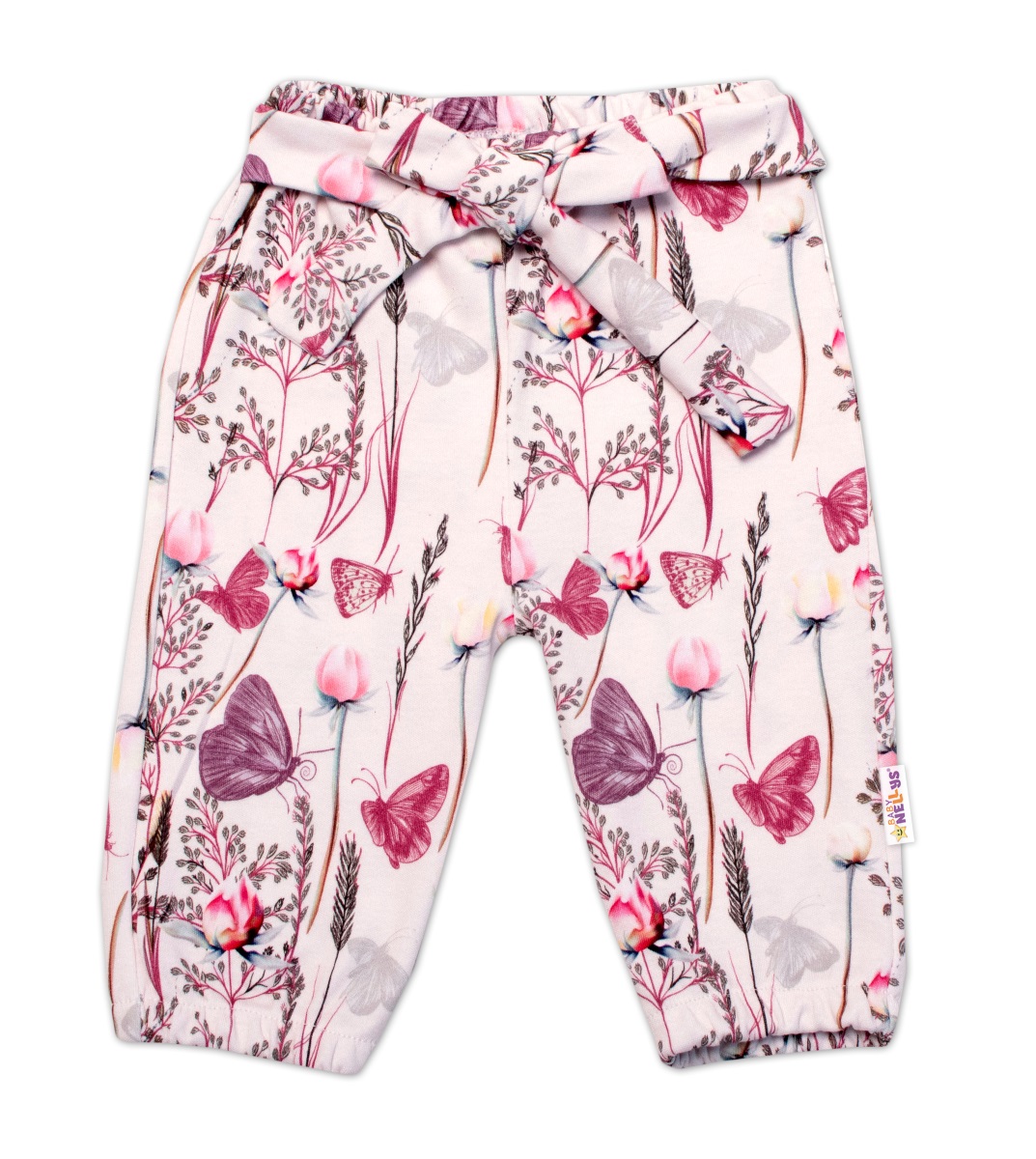 Baby Nellys Tepláčiky s ozdobným pásikom Motýliky – ružová, veľ. 74